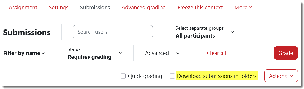 - Scroll to the bottom of the page and uncheck the box labeled Download submissions in folders.