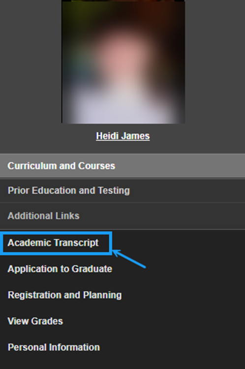 From here, click Academic Transcripts in the menu on the left
